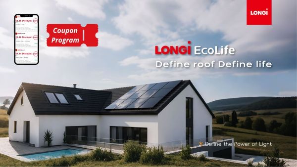 LONGi EcoLife X10 480M Single Glass Black, all-black solar panel with HPBC 2.0 technology.