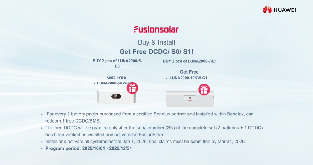 This battery system can store 10kWh and is compatible with Huawei battery-ready inverters. Maximum configuration is 30kWh (6x 5kWh). (In this battery system, the power module is included.)