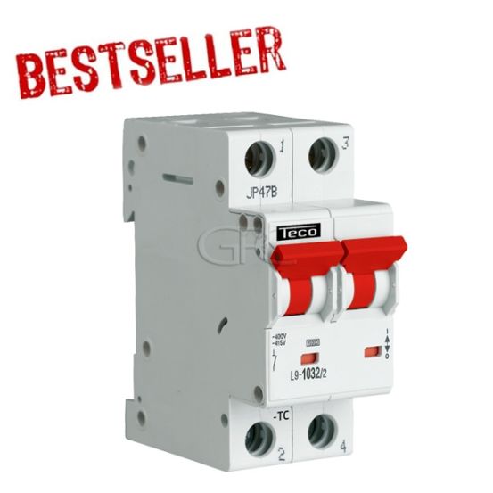 2847Teco Disjoncteur modulaire 10A, L9, TC, 2-Pôles, Type C - Reference de Teco: L9C1024 / 157128
